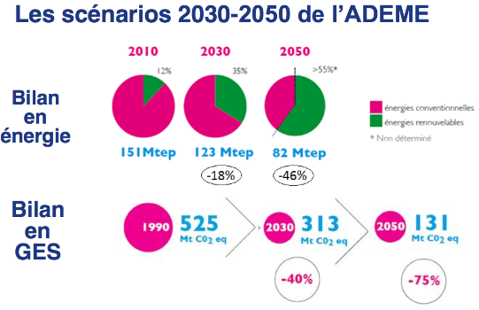 Ayant pris acte du “déficit actuel d’intérêt des médias et de l’opinion publique” concernant la question climatique, en particulier depuis la conférence de Copenhague en 2009, l’Agence de l’environnement et de la maîtrise de l’énergie (ADEME) a désiré répondre à ce désintérêt en transcrivant ses données chiffrées des horizons 2030 et 2050 en comportements réalistes, histoire notamment de rendre plus concret le Facteur 4 (diviser par 4 d’ici 2050 les émissions de gaz à effet de serre par habitant, pour répondre aux engagements de la France).