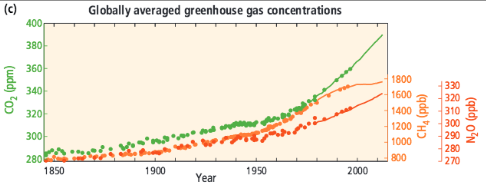 + 143 %, + 254%, + 121 %: ce sont les augmentations depuis l’époque préindustrielle, des concentrations dans l’atmosphère des principaux gaz à effet de serre émis par l’homme, à savoir le dioxyde de carbone (CO2), le méthane (CH4) et le protoxyde d’azote (N2O). Et ces gaz ont respectivement atteint 397,7 ppm (1), 1833 ppb (2) et 327,1 ppb en 2014, soit trois nouveaux pics. Ce sont les chiffres du bulletin de l’Organisation météorologique mondiale, établis à partir de l’analyse des données du réseau mondial de stations d’observation, et publiés à l’approche de la COP21 (3).