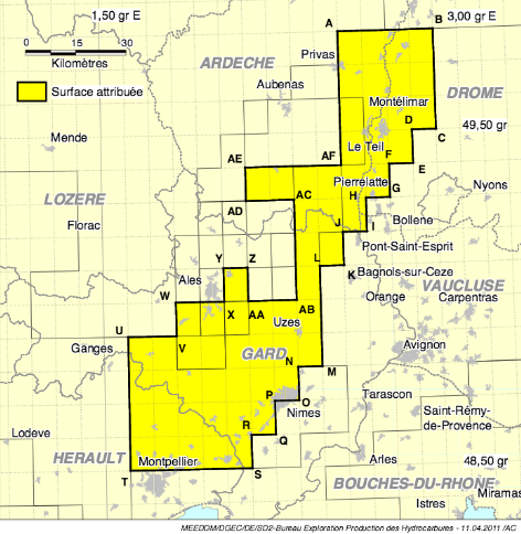 Par son jugement du 28 janvier annulant la décision de l'Etat, en octobre 2011, d'abroger le permis de recherche d’hydrocarbures de schiste dans la région de Montélimar, le tribunal administratif de Cergy-Pontoise a donné raison à Total Gas Shale Europe et Total Exploration et Production France. Ce permis de recherche concerne une superficie de l’ordre de 4500 km2 sur les départements de la Drôme, de l’Ardèche, de l’Hérault, du Vaucluse et du Gard. Ironie du sort: le pétrolier n'est à ce jour pas en mesure de commencer des recherches puisque le permis, accordé en mars 2010 pour cinq ans, est éteint depuis mars 2015.