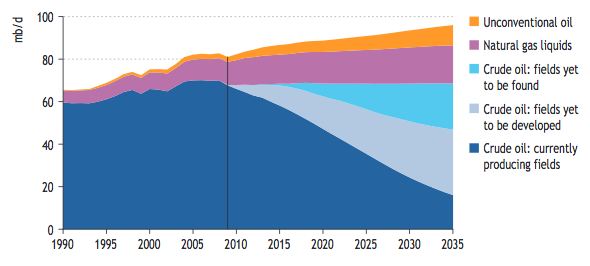 Etonnamment, les conclusions de Michael Kumhof, qui existent depuis plusieurs années, ne semblent pas encore suffisamment édifiantes pour vraiment sortir du Département « Recherche » du FMI et être adoptées par les économistes. Or, la production mondiale de pétrole se trouve sur une sorte de plateau depuis 2005 tandis que le pétrole conventionnel a, lui, connu son pic pendant cette période... Ce sont les pétroles non-conventionnels qui compensent jusqu'alors son déclin, mais avec un besoin de plus en plus important en énergie et un coût croissant en gaz à effet de serre. L'ASPO (association pour l'étude des pics de production de pétrole et de gaz naturel, dont la plupart des membres sont issus de la planète "pétrole") prévoit le pic global de la production d'or noir vers 2015.