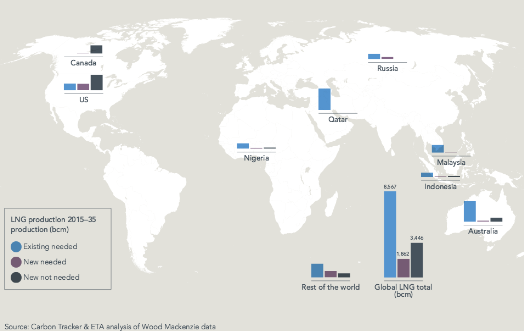 Carbon Tracker: 16 des 20 plus grands acteurs du marché du gaz liquéfié ont dans leurs cartons des projets majeurs “qui ne vont probablement pas être nécessaires pour satisfaire la demande en 2025”