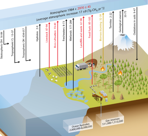Le raisonnement est le suivant : faites monter la température dans certains fonds de l’océan, faites dégeler le pergélisol vers le Pôle Nord et le cristal finira par redevenir méthane, puissant gaz à effet de serre, ou bien son corolaire le CO2. Si des hydrates de méthane rejoignent l’atmosphère, un risque supplémentaire est identifié : la destabilisation des gisements d’hydrate de méthane des océans pourrait provoquer des glissements de terrain et, par voie de conséquence, des tsunamis…