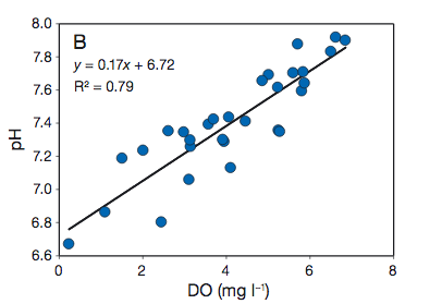 Les expériences ont été menées avec des poissons argentés -silversides- dans la Baie de Chesapeake, sur la côte Est des Etats-Unis. Elles mettent en évidence que, quand on baisse le pH de l'eau, le seuil minimum d'oxygène dissous nécessaire à la vie de ces poissons est rehaussé: leur mort intervient au-dessus de ce que leur espèce est normalement censée supporter. Ainsi, ils peuvent par exemple être moins résistants aux diminutions des teneurs en oxygène de l'eau, comme il peut y en avoir naturellement, par exemple dans les baies, estuaires...