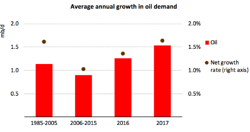 Selon les chiffres publiés, la demande de pétrole a augmenté de 1,6% (1,5 million de barils par jour), soit 60% de plus que la croissance moyenne des 10 dernières années (1%). "Une fort développement des SUV (Sport Utility Vehicles) et autres véhicules imposants dans la majorité des économies ainsi que la demande dans la pétrochimie, ont soutenu cette croissance", commente l'Agence internationale de l'énergie.